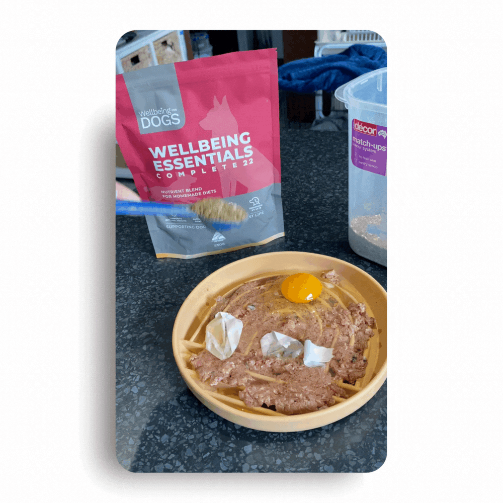 “I absolutely love Wellbeing Essentials Complete 22 for improving the health and vitality of my patients, and my own dog. I love that the nutrients are delivered in a real food format, so much easier for the dog to absorb and utilise them than synthetic supplements. I also love that it gives my clients the confidence to feed their dogs a fresh food diet, knowing they are providing all of the nutrients their dog needs.