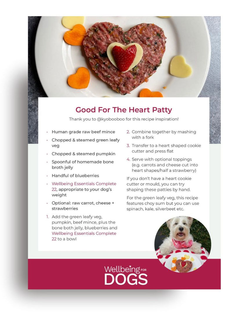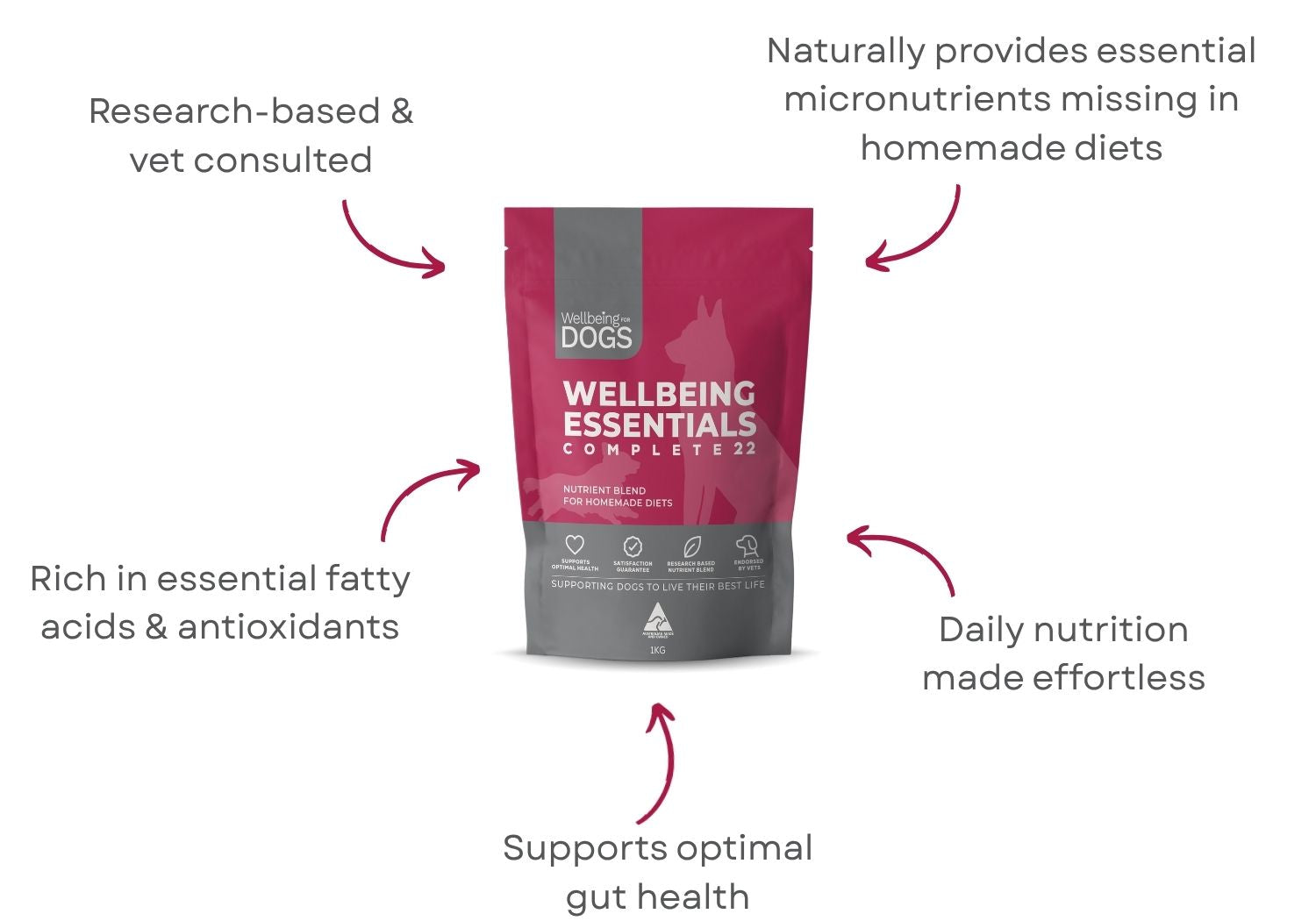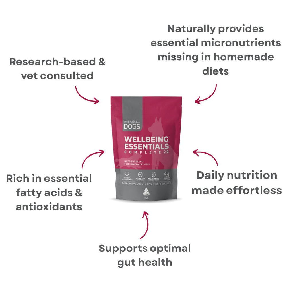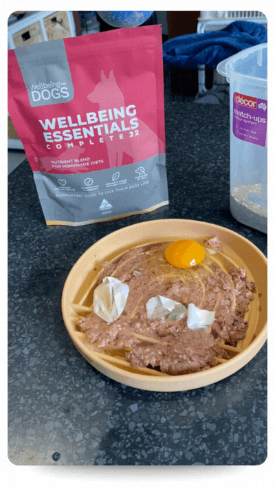 “I absolutely love Wellbeing Essentials Complete 22 for improving the health and vitality of my patients, and my own dog. I love that the nutrients are delivered in a real food format, so much easier for the dog to absorb and utilise them than synthetic supplements. I also love that it gives my clients the confidence to feed their dogs a fresh food diet, knowing they are providing all of the nutrients their dog needs.