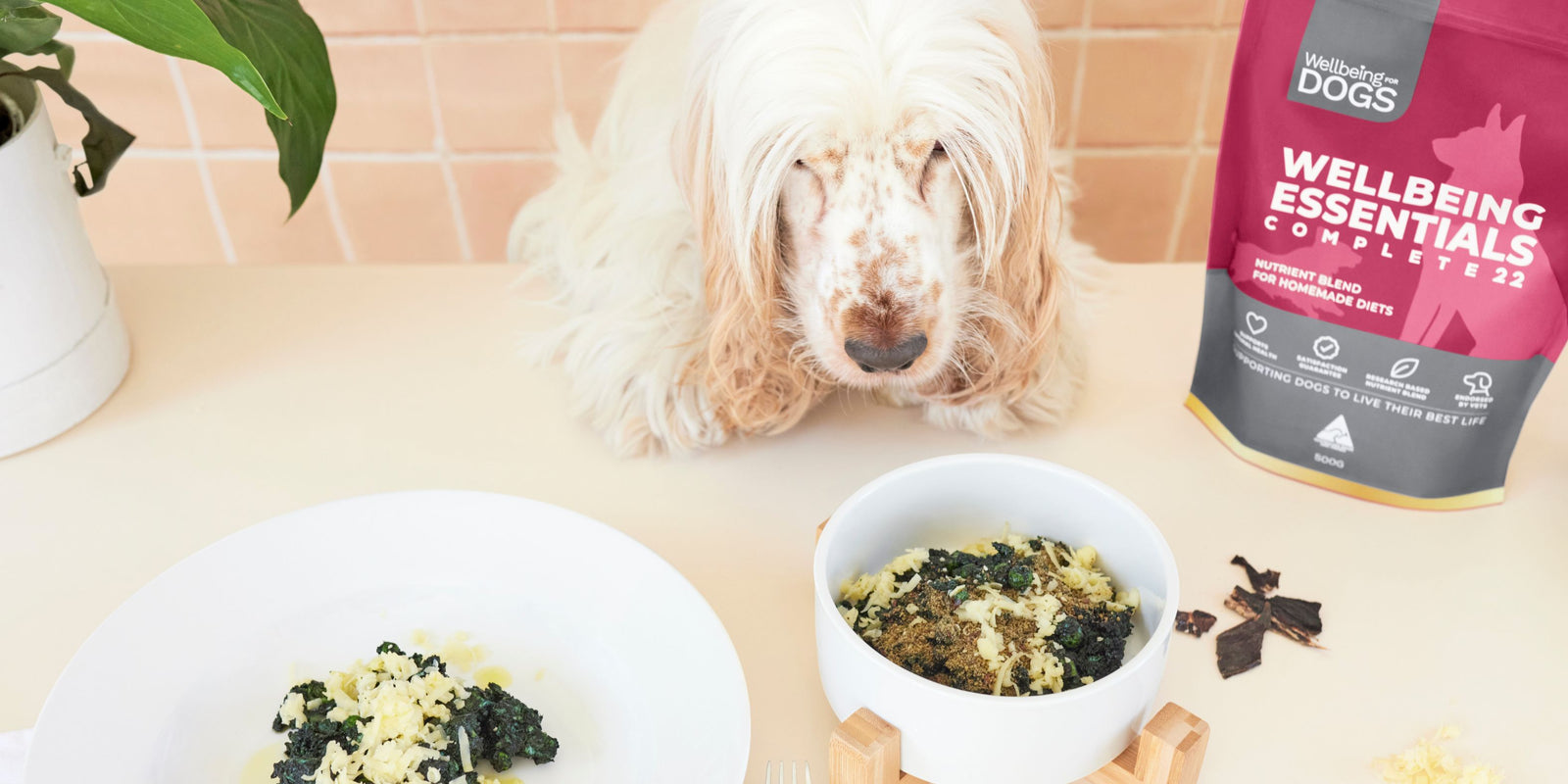 A vet-formulated supplement designed to complete your dog’s diet with the 22 nutrients most home-prepped meals are missing.