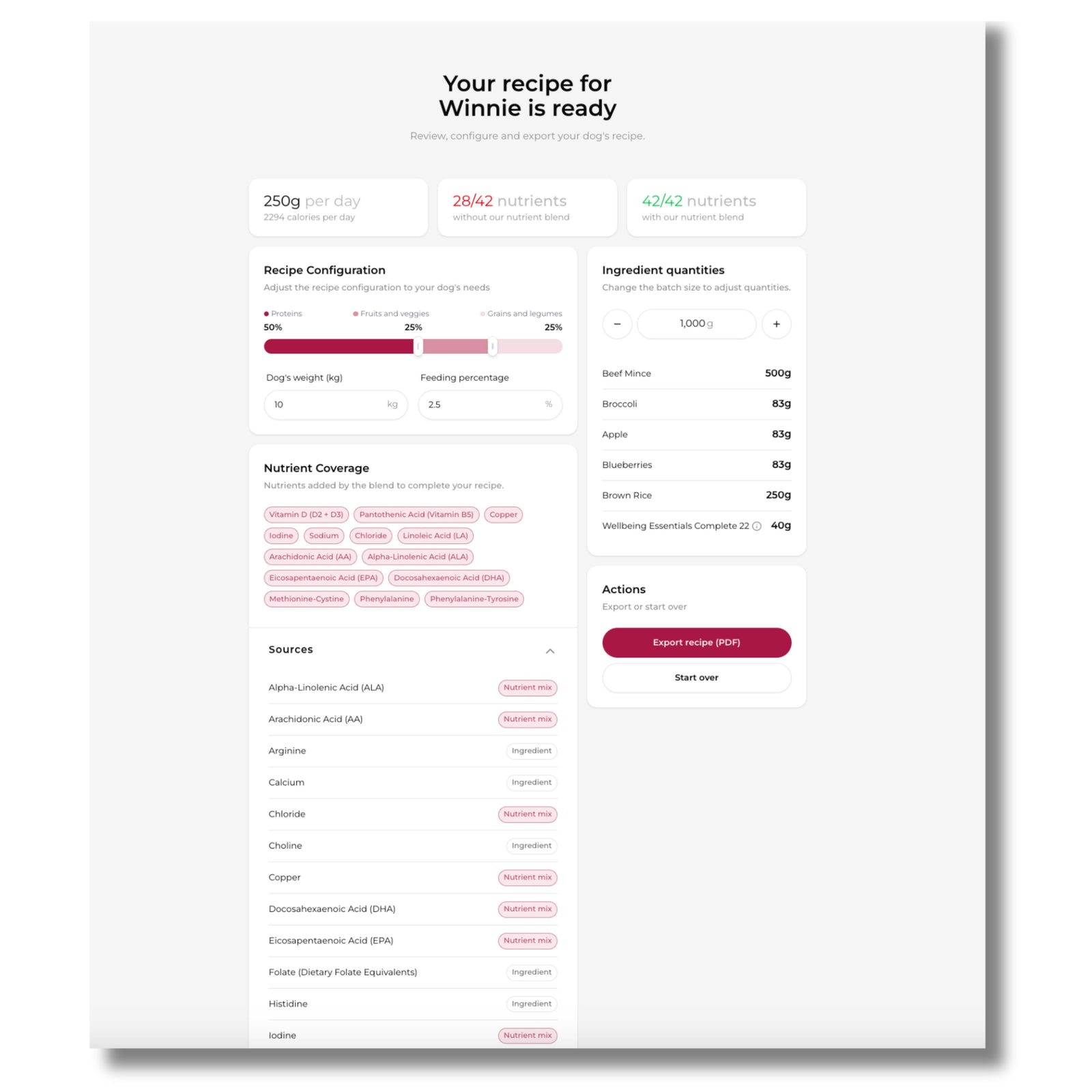 Download your custom recipe, feeding guide, and nutritional breakdown in one easy file.
