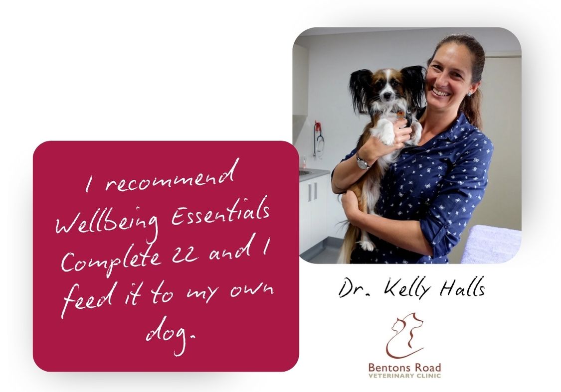 Most of my patients go home with a recommendation to add Wellbeing Essentials to their dog's bowl. It helps dogs with so many health conditions! They can see an improvement in their skin and coat quality, their gut health and their energy levels.”